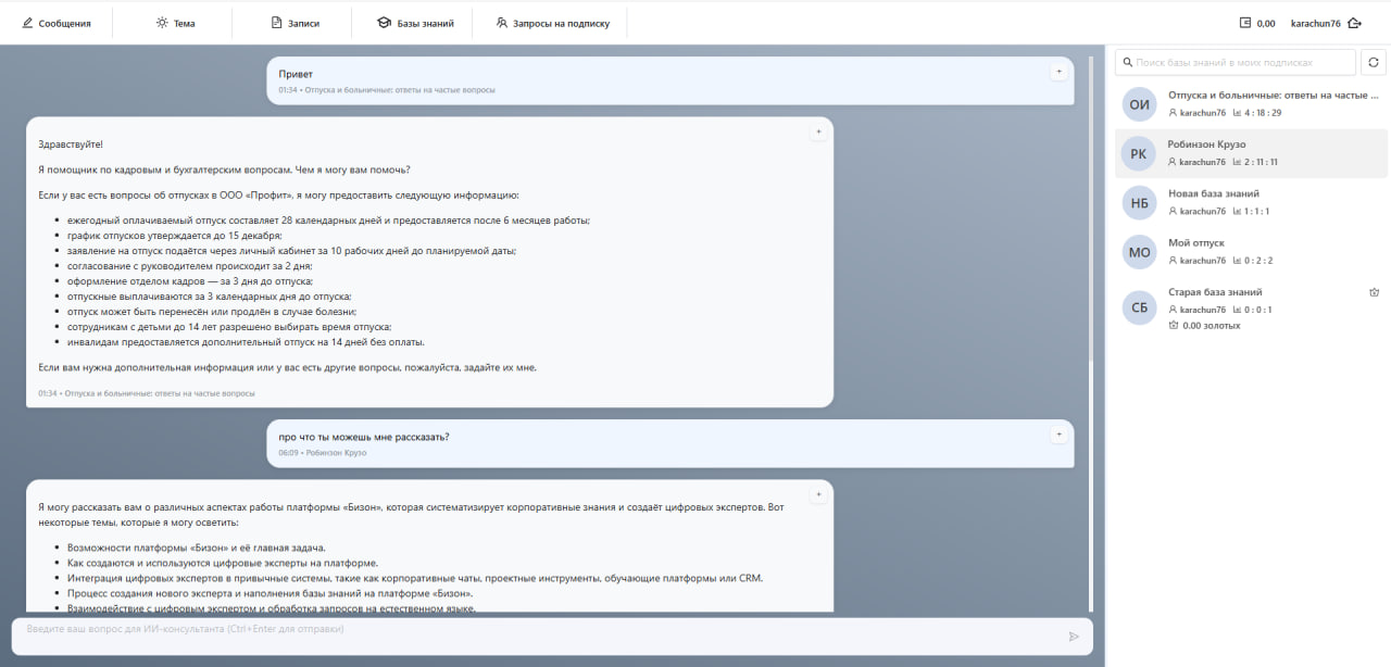 Ключевое отличие в архитектуре и цели. Публичные LLM вроде ChatGPT — это генеративные модели, обученные на общих интернет-данных. «Бизон» — это RAG-платформа (Retrieval-Augmented Generation), которая работает на ваших внутренних документах.